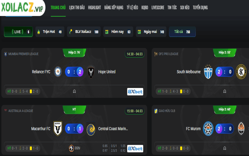 Mở trình duyệt trên điện thoại hoặc máy tính, gõ địa chỉ của XoilacTV vào thanh tìm kiếm. Giao diện trang chủ hiện ra với đầy đủ các mục điều hướng rõ ràng.