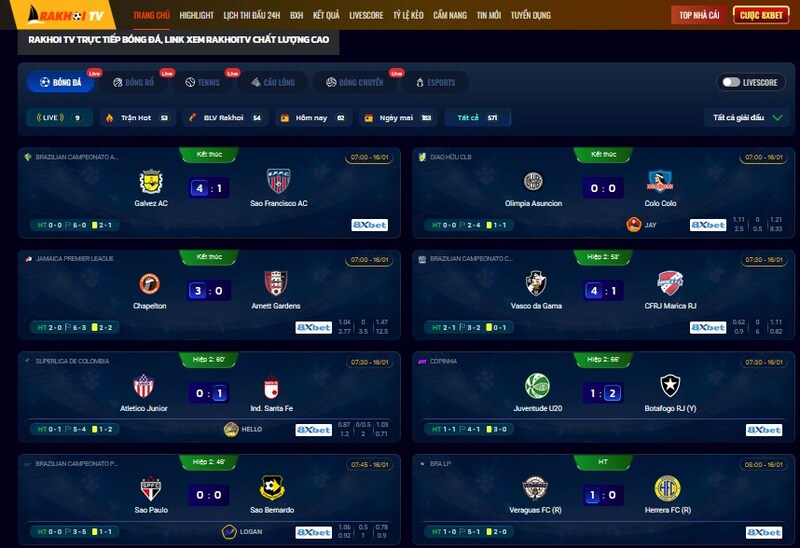 Điều đầu tiên khiến mình có thiện cảm với Ra Khoi TV chính là giao diện. Không rườm rà, không quá nhiều quảng cáo che kín màn hình, mọi thứ được sắp xếp khá khoa học. Lịch thi đấu, link xem trực tiếp, highlight, bảng tỷ số… đều nằm ở những vị trí dễ tìm.